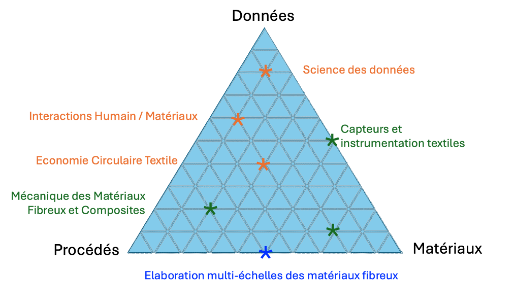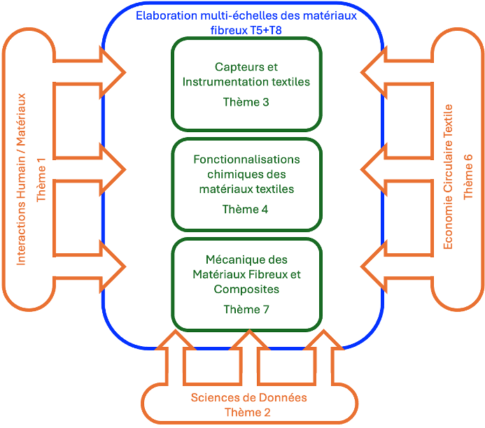 The objectives of the project are to set up experimental, theoretical and numerical methodologies/tools for designing and developing multifunctional textile materials using an integrative multi-scale approach based on “multifunctionality” / “production, use”, combined with an eco-design approach.  8 themes have been identified :